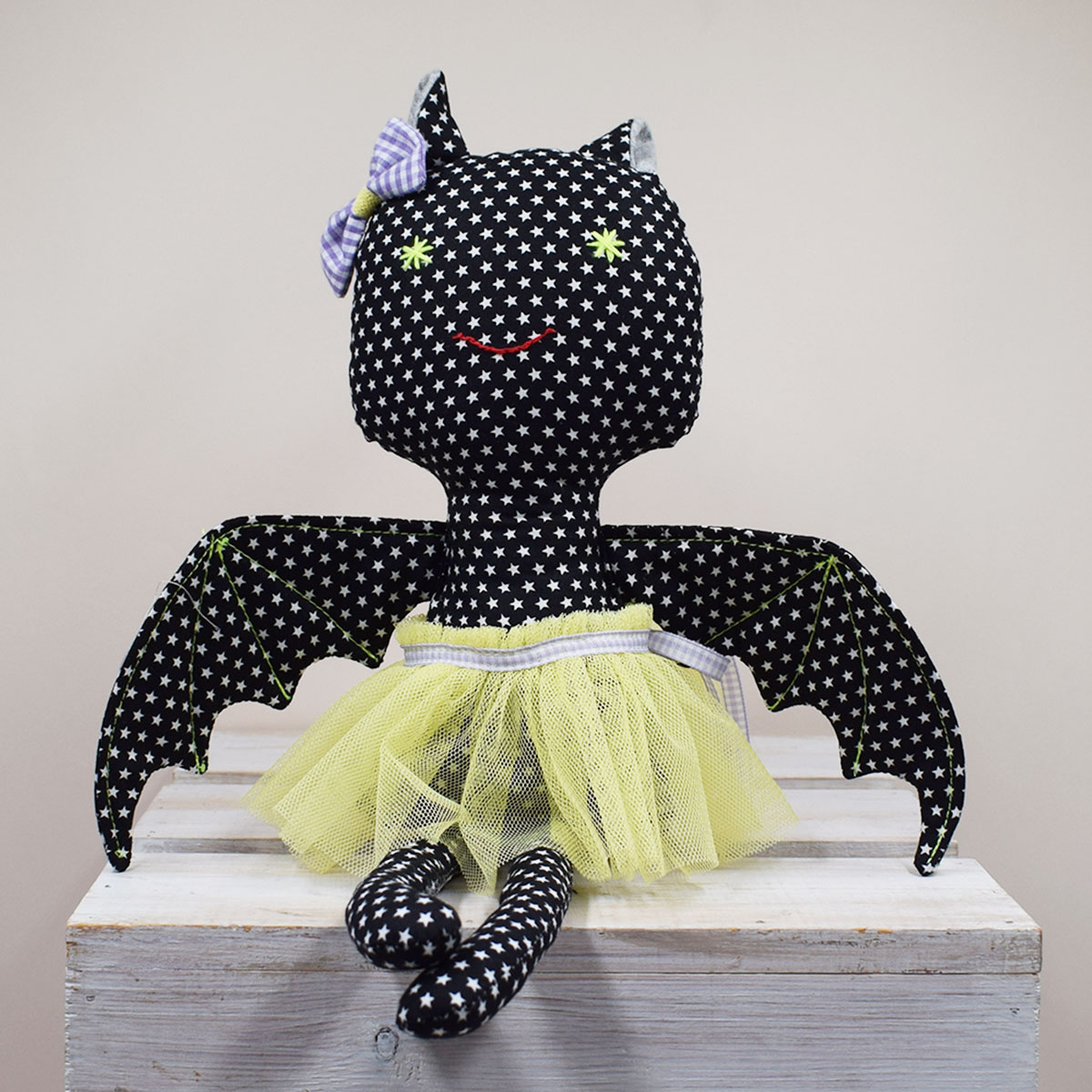 Μια νυχτεριδούλα μπαλαρίνα για μεγάλες αγκαλιές με τα χεράκια φτεράκια και τα λαμπερά ματάκια που…βλέπουν στο σκοτάδι!  Είναι η καλύτερη επιλογή χειροποίητου δώρου για πιο μεγάλα παιδάκια που τρελαίνονται για παραμύθια “τρόμου”!